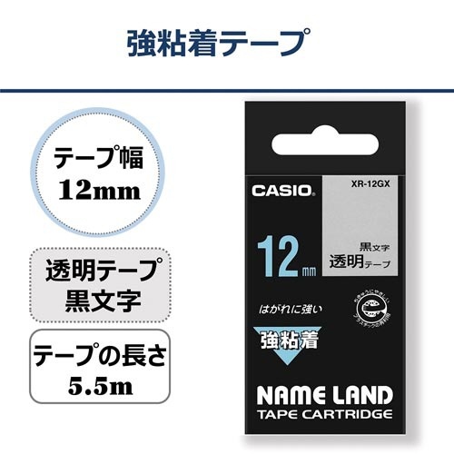 ネームランド 強粘着透明テープ 12mm 黒文字