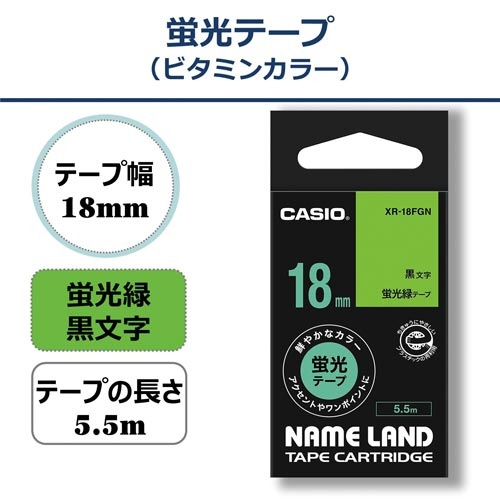 ネームランド 蛍光緑色テープ 18mm 黒文字