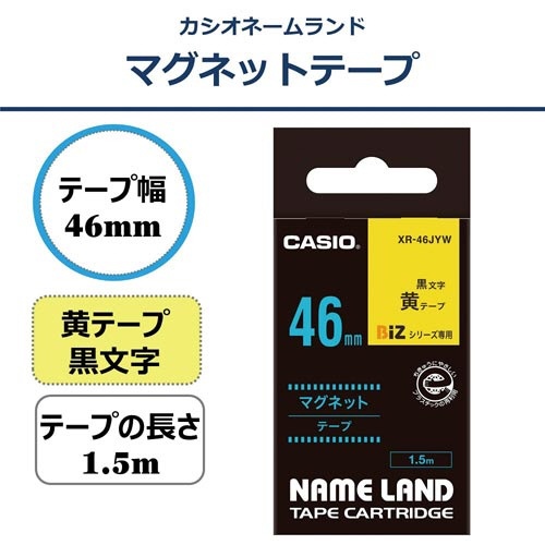 2. ネームランド マグネット黄色テープ46mm 黒文字