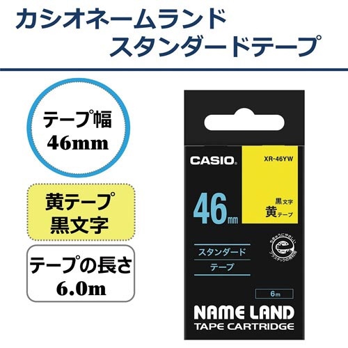 ネームランド 黄色テープ 46mm 黒文字