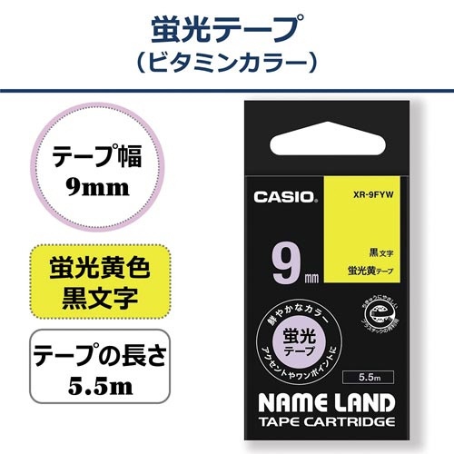 ネームランド 蛍光黄色テープ 9mm 黒文字