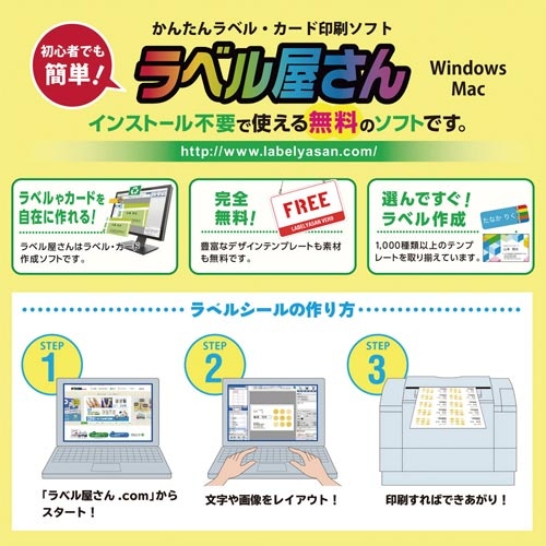 | 注意事項 | ※ご使用の機種に対応する坪量をご確認のうえ、ご利用ください。 ※インターネットでエーワンのホームページにアクセスしていただければ印刷ソフト〈ラベル屋さん〉を無償ダウンロードできます。http://www.labelyasan.com/ 以下の点にご注意ください