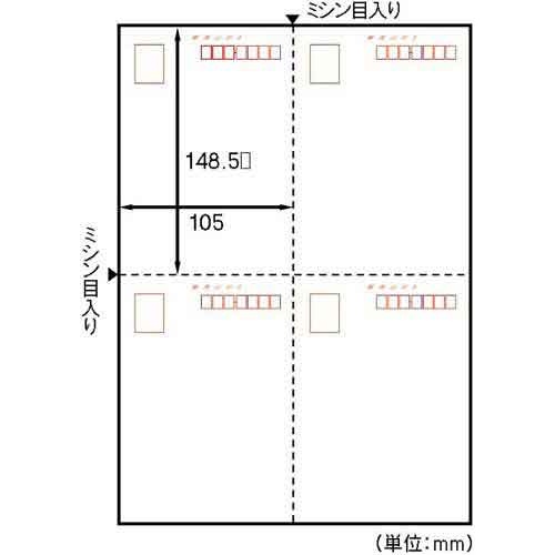 はがき(郵便番号枠付)4面 A4 200枚入