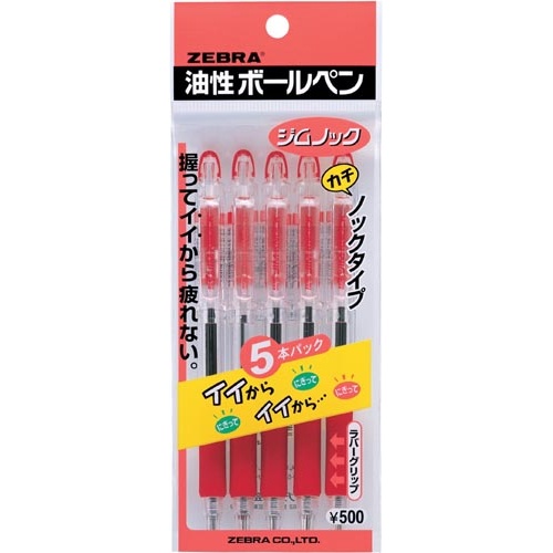 ノック式ボールペン ジムノック0.7mm 赤5本