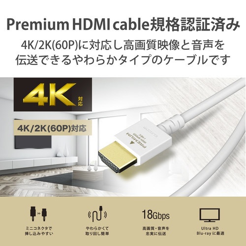 2. HDMIケーブル 1.5m やわらか ホワイト
