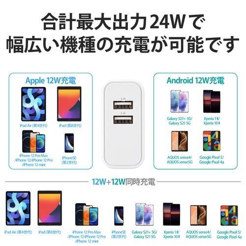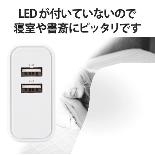 2. USB充電器 4.8A出力 A×2 ホワイト