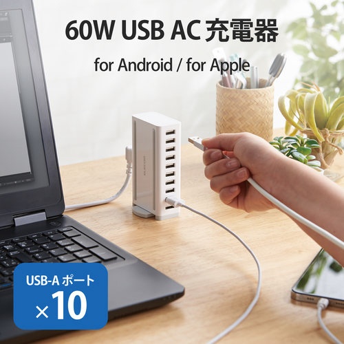 USB充電器 合計60W A×10 ホワイト