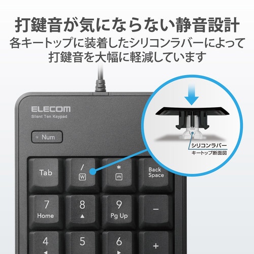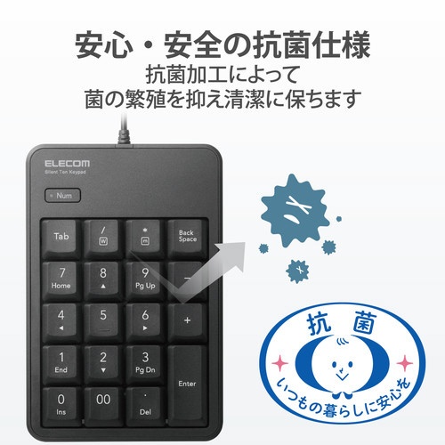 有線テンキー 抗菌 静音 メンブレン ブラック