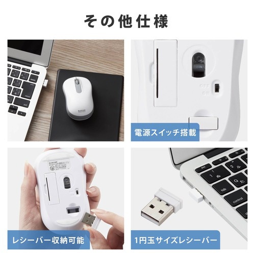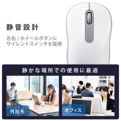 無線マウス 抗菌 静音 Mサイズ ホワイト