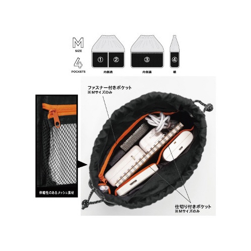 | 注意事項 | ※収納物を入れすぎたり、鋭利なものを入れると、本製品が破損する原因になるますのでご注意ください。 ※本製品に収納した物の破損や故障など、当社は一切の責任を負いません。予めご了承ください。 ※汚れは柔らかい布で乾拭きしてください。また、シンナーや洗剤などで拭かないでください。 ※水濡れや摩擦により、色落ちや色写りすることがあります。 ※縫製品のため、生地の風合い及び色合いにつきまして、個体差がある場合がありますのでご了承ください。 ※直接日光の当たる場所や、高温・多湿の場所での放置または保管はしないでください。 以下の点にご注意ください