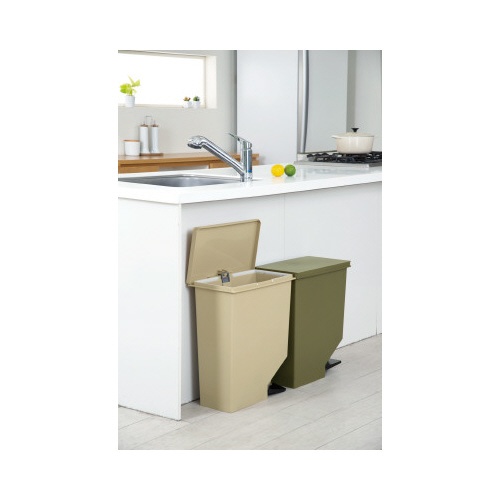 棚下・カウンターにも置けるペダルペール35型カーキ