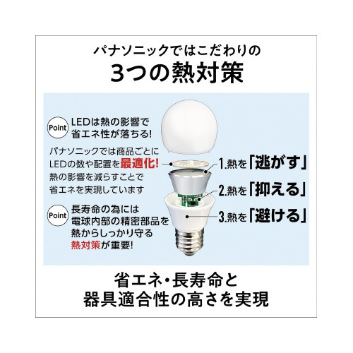 注意事項 | ※【返品に関するご注意】開封後はお客様のご都合による返品はお受けできません。 ※1器具の種類によっては、保護回路が働き電力をおさえるため、明るさが低下する場合があります。 ※2条件を満たす場合、屋外器具での使用が可能です。 ※1.下面開放を除く防雨型、または防湿型の器具で使用すること。(水滴・結露による故障の原因)2.ランプ周囲温度0℃−40℃の範囲で、点灯時に器具に直射日光があたらない場所で使用すること。(水滴・結露による故障、温度過熱による短寿命の原因)3.屋内配線に接続された器具(宅内のブレーカーに接続された器具)で使用すること。(雷などの高電圧による短寿命の原因) ※メーカー単品商品情報 以下の点にご注意ください