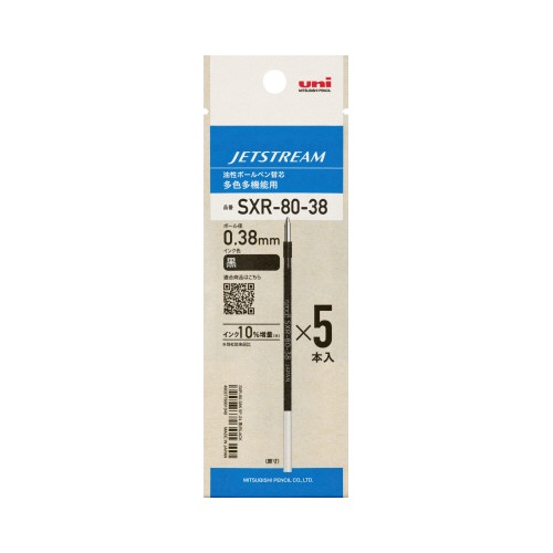 ジェットストリーム多色用替芯紙パ0.38mm黒5本