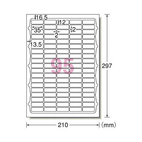 2. 強粘着紙ラベル兼用A4 95面四辺余白角丸100枚