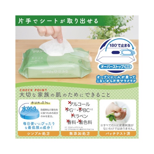 注意事項 | ※【返品に関するご注意】開封後はお客様のご都合による返品はお受けできません。 ※シートは水に溶けません。 ※トイレには流さないで下さい。 ※お肌に異常が生じていないかよく注意して使用して下さい。 ※お肌に合わない場合には使用をやめて下さい。 ※使用中や使用後、直射日光にあたった後に、赤み、はれ、かゆみ、刺激、色抜け(白斑等)や黒ずみ等の異常があらわれた場合はただちに使用を中止して皮フ科医等に相談して下さい。 ※そのまま使用を続けますと、症状を悪化させることがあります。 ※内容成分(原材料)のにおいが感じられる場合がありますが、品質には問題ありません。 ※乳幼児には乳幼児専用の製品を使用してください。 ※商品の外観仕様等は、予告なく変更することがあります。 以下の点にご注意ください