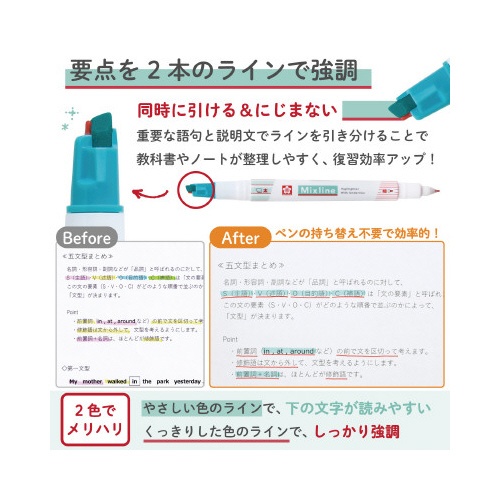 太字:蛍光イエロー×グリーン、細字:グリーン