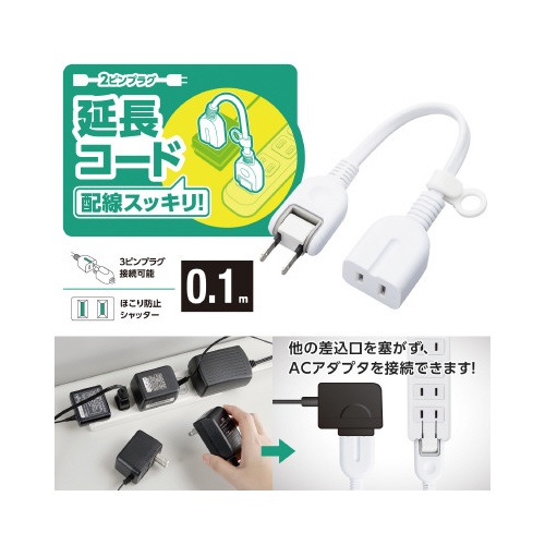 2. エレコム 延長コード 2ピン 10cm ホワイト