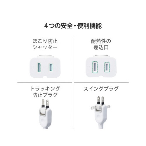 エレコム 延長コード 2ピン 2.5m ホワイト