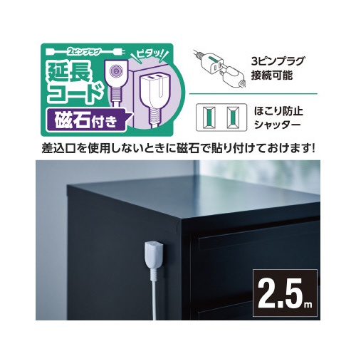 2. エレコム 延長コード 2ピン 2.5m ホワイト