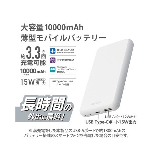 モバイルバッテリー 10000mAh ホワイト