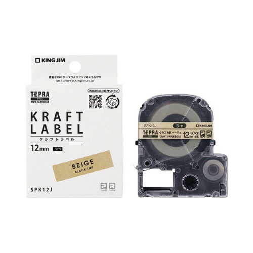 テプラPROテ−プ クラフト紙 12mm黒文字×5