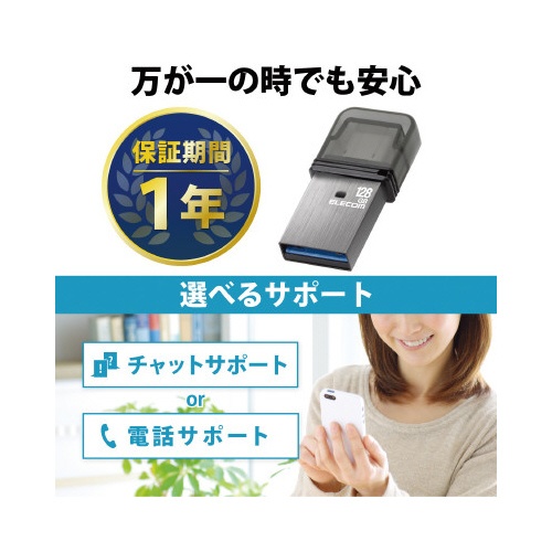USBメモリ 128GB キャップ式 シルバー