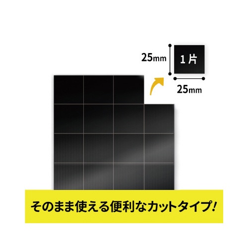 注意事項 | ※磁力面に特殊滑り止めコーティング加工をしてズレに強い。粘着付の強力マグネットシートです。切らずに便利なカット済みタイプ。●長さ/300mm●幅/100mm●厚さ/1.2mm●仕様/カットタイプ●1片サイズ/25×25mm●材質/異方性マグネット●機能/特殊滑り止めコーティング加工●粘着有無/有●保持荷重目安/約240g(1片使用時)●入数/1枚(48片入)●単位/1袋 以下の点にご注意ください