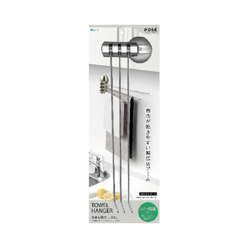 ポゼ ふきん掛けステンレス3本(レバー式吸盤)