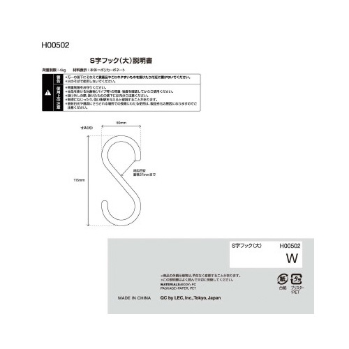 注意事項 | ※万一の落下にそなえて貴重品やこわれやすいものを掛けたり付近に置かないでください。 ※火のそばで使用しないでください。 ※荷重制限をお守りください。 ※本品を掛ける対象物(パイプ等)の荷重・強度を確認してからご使用ください。 ※掛け外しの際、掛けたものの落下には充分ご注意ください。 ※無理にねじったり、強い衝撃を与えると破損することがあります。 ※直射日光や風雨にさらされる場所での長期にわたる使用は、製品劣化の原因になりますのでご注意ください。 以下の点にご注意ください