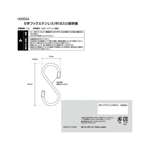 注意事項 | ※万一の落下にそなえて貴重品やこわれやすいものを掛けたり付近に置かないでください。 ※火のそばで使用しないでください。 ※荷重制限をお守りください。 ※本品を掛ける対象物(パイプ等)の荷重強度を確認してからご使用ください。 ※掛け外しの際、掛けたものの落下には充分ご注意ください。 ※無理にねじったり、強い衝撃を与えると破損することがあります。 ※直射日光や風雨にさらされる場所での長期にわたる使用は、製品劣化の原因になりますのでご注意ください。 以下の点にご注意ください