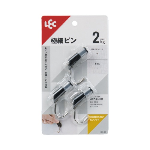 注意事項 | ※万一の落下にそなえて貴重品やこわれやすいものを掛けたり付近に置かないでください。 ※この商品に使用しているピンは鋭利なので、幼児の手の届かないところに保管してください。 ※火のそばで使用しないでください。 ※荷重制限をお守りください。 ※壁面を傷める原因となるため、フックの先端に荷重をかけたり、衝撃のかかる掛け方はしないでください。 ※フックに掛けたものは、引っぱらないでください。 ※ロープを張るなど、斜め方向の荷重はお避けください。 ※屋外でのご使用はお避けください。 ※取り外す際、本体を強く引っぱると壁面を傷めるおそれがありますので、ご注意ください。 ※ピンが特に細い商品です。無理な力を加えないようにご注意ください。 以下の点にご注意ください