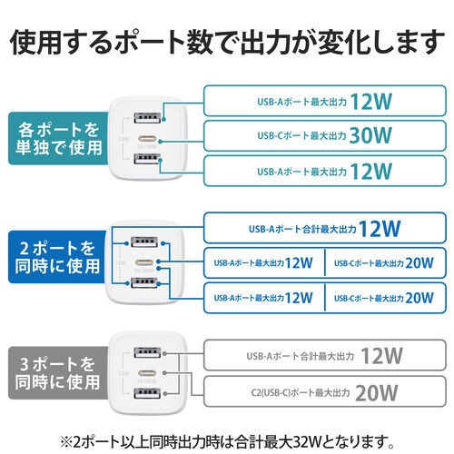 2. タイプC充電器 32W C×1 A×2 ホワイト