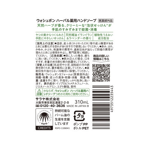 ウォシュボンハーバル薬用ハンドソープ 本体