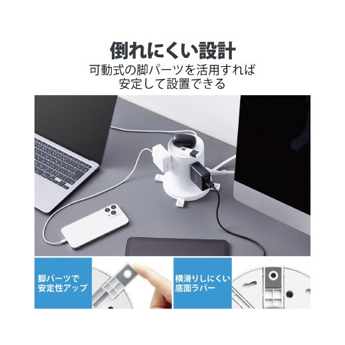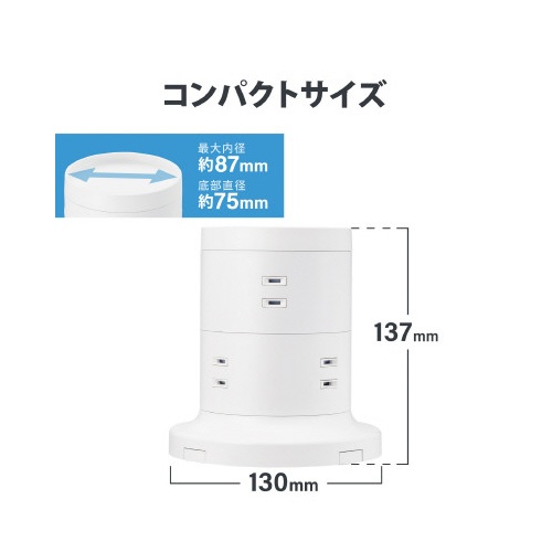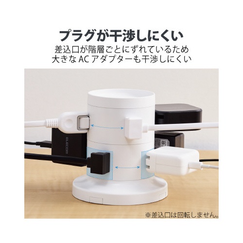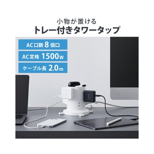 2. タワー型 電源タップ コンセント ホワイト 8口