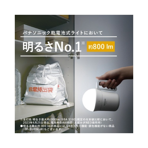 注意事項 | ※全灯色 明るさ最大時(800 lm)SBA S1601規定の光束値比較において。 ※2023年3月15日現在。 ※電池寿命約8時間(エボルタNEO使用時)。 ※【返品に関するご注意】開封後はお客様のご都合による返品はお受けできません。 以下の点にご注意ください