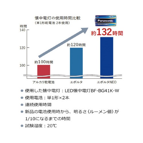 ※2017年3月1日現在、パナソニック製アルカリ乾電池、IECにおける全放電モードの平均値より。