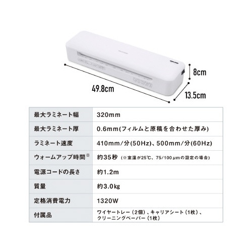 高速起動ラミネーターA3 4本ローラー ホワイト
