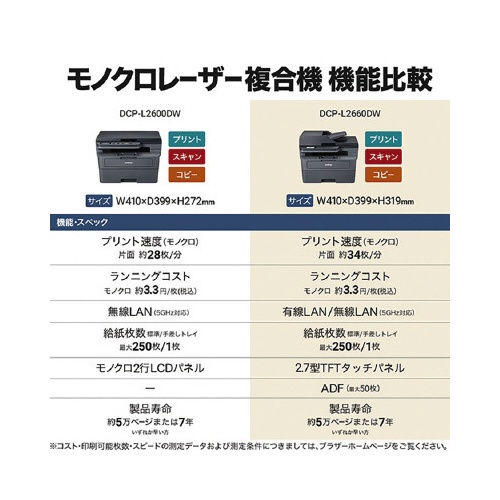 注意事項 | ※USBケーブルは付属しておりません。 ※別途ご用意下さい。 ※付属のトナーはスタータートナーです。 ※最新の対応OSはメーカーホームページにてご確認下さい。 ※macOS対応ドライバーは提供がありません。 ※Macからの印刷またはスキャンを行う場合は、AirPrintをご利用下さい。 ※【返品に関するご注意】開封後はお客様のご都合による返品はお受けできません。 以下の点にご注意ください