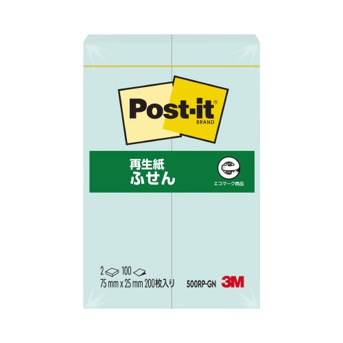 ポストイット再生紙ふせん75×25緑2冊X10