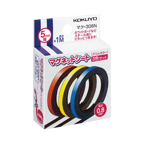 マグネットシートスリムカラー5mm青・赤・黄X5