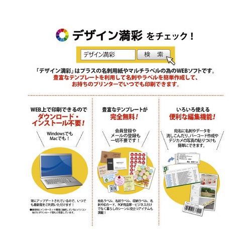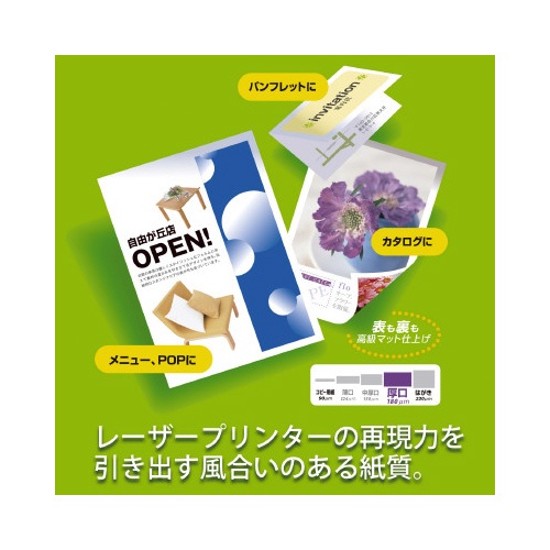 | 注意事項 | ※プリンターの取扱説明書に従って、用紙種類を設定してください。 ※機器故障の原因となりますので、ファクシミリ、インクジェットプリンターでの使用はしないでください。 ※フルカラーのレーザープリンターやコピー機は機種によっては適合しないものもあります。 以下の点にご注意ください