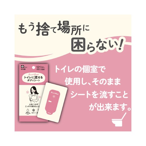| 注意事項 | ※【返品に関するご注意】開封後はお客様のご都合による返品はお受けできません。 ※トイレつまりを防ぐため1枚ずつ流す。 ※大の水量で流す。 ※肌に合わない場合は使用をやめる。 ※使用中使用後、直射日光にあたった後に、異常があらわれた場合使用を中止し皮フ科医等に相談すること。 ※使用を続けると症状を悪化させる場合あり。 ※肌に異常のある部位には使用しないこと。 ※目にはいらないよう注意すること。 ※その場合すぐに水かぬるま湯で洗い流すこと。 ※直射日光・高温・低温になる場所に保管しないこと。 ※乳幼児や認知症の方の手の届かない場所に保管すること。 ※温めるとシートが変色する場合あり。 以下の点にご注意ください