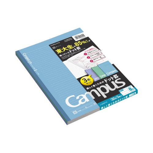 キャンパスノート(ドット入り罫線)3色パックB罫