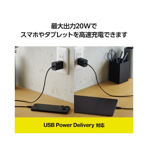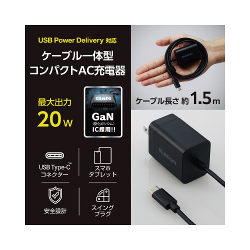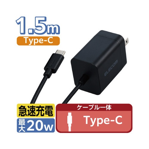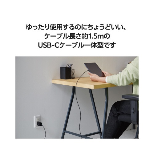 Type−C充電器 ケーブル一体型 1.5m 黒