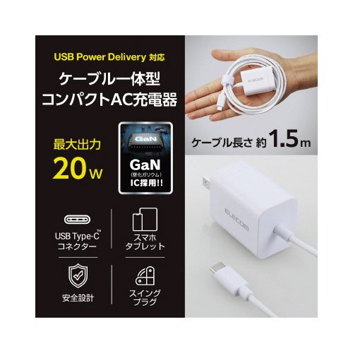 2. Type−C充電器 ケーブル一体型 1.5m 白
