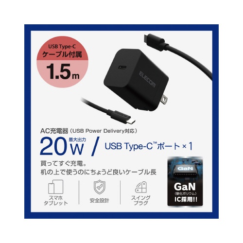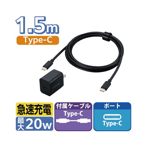 Type−C充電器 ケーブル付属 1.5m 黒