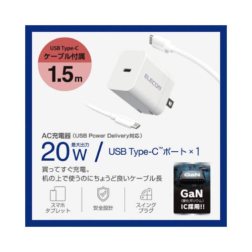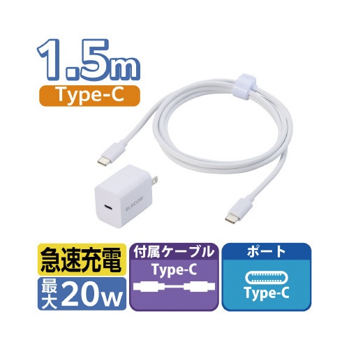 2. Type−C充電器 ケーブル付属 1.5m 白