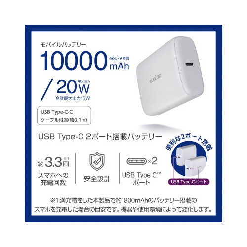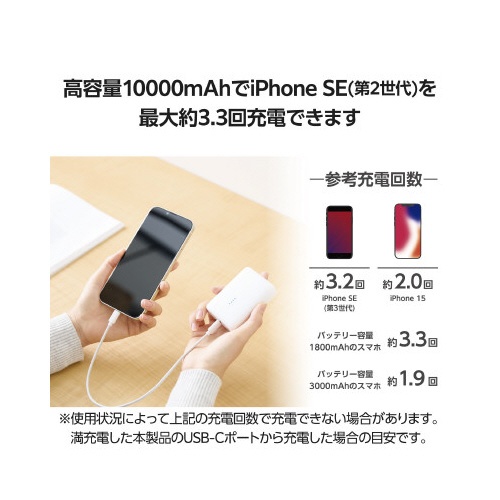 モバイルバッテリー 10000mAh ホワイト