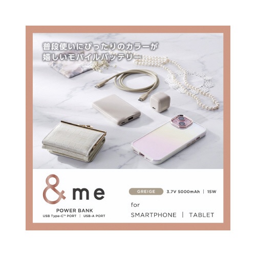 モバイルバッテリー &me グレージュ