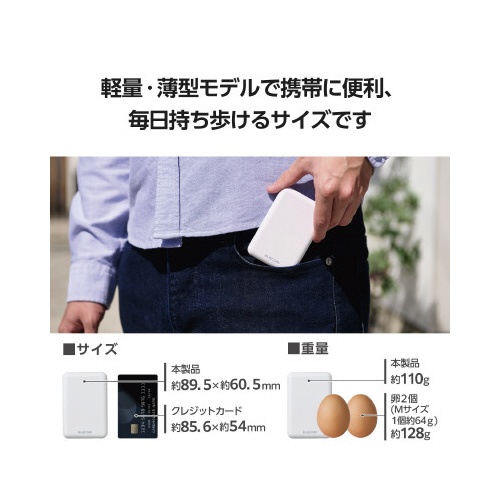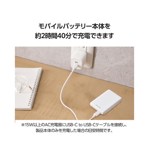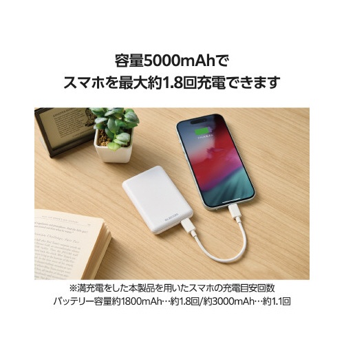 モバイルバッテリー 5000mAh C×1 白
